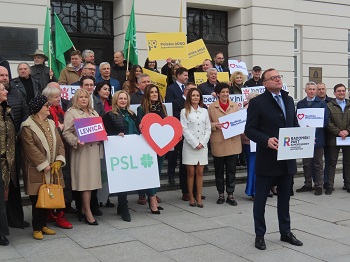 W konferencji prasowej wzięły udział kandydatki i kandydaci w wyborach , w tym liczna grupa z Lewicy .